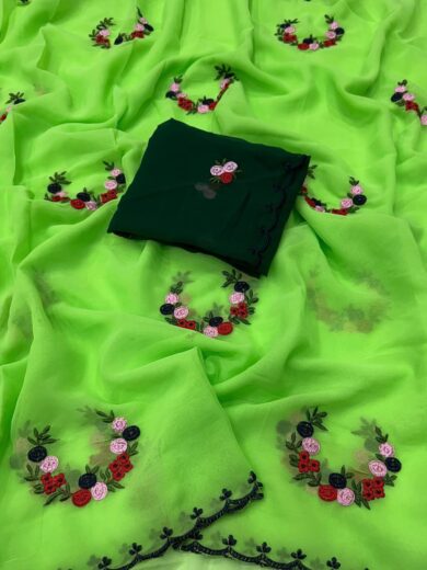 Pure Georgette Embroidery WorkSarees